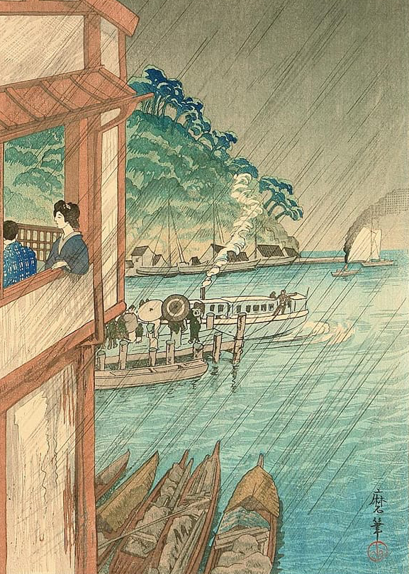 Hoy os proponemos escribir un haiku o senryuu inspirado en este grabado de Oda Kazuma: Mihonoseki en Izumo.