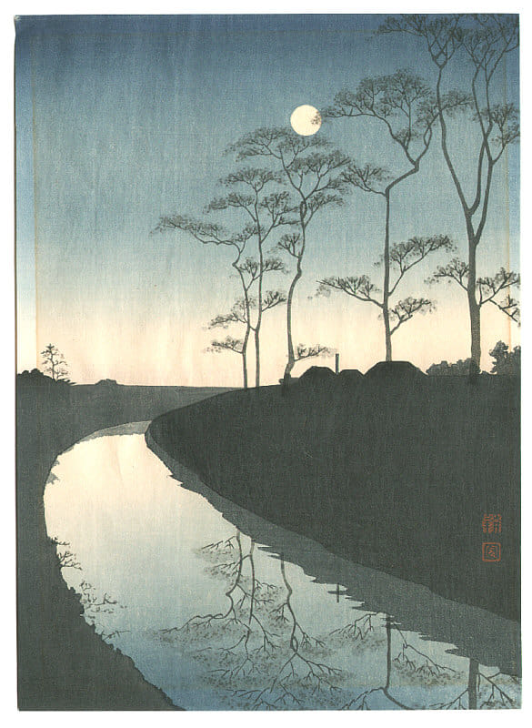 Hoy os proponemos escribir un haiku inspirado en este grabado de Koho Shoda: «Canal a la luz de la luna»