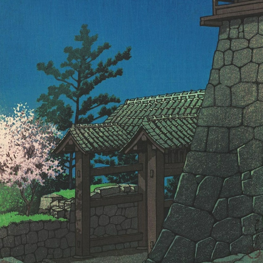 Hoy os proponemos escribir un haiku inspirado en este grabado de Kawase Hasui: «Castillo de Matsuyama».