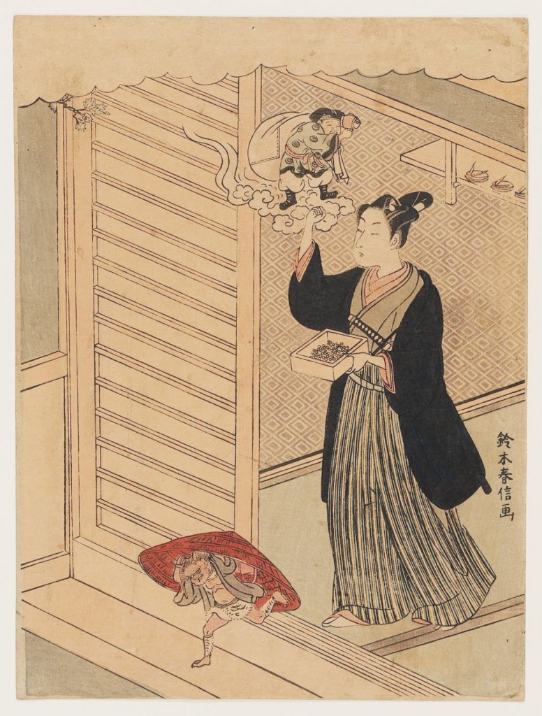 Al comienzo de la primavera, el dios del zodíaco del año en curso, da lugar a que entre el nuevo dios. En ese reemplazado de dioses, los demonios aprovechan la ocasión para entrar al mundo y sembrar caos, destrucción y enfermedades. O al menos, esa es la raíz de esta celebración, en la que un miembro de la familia (tradicionalmente es un rol que ejerce el cabeza de familia o un varón con el signo del zodíaco chino del año en curso) arroja judías de soja tostadas al grito de «Oni wa soto! Fuku wa uchi!» (鬼は外!福は内!), que se traduciría como «¡Fuera los demonios! ¡Que entre la buena suerte!». A esta ceremonia se le denomina mamemaki (豆まき).