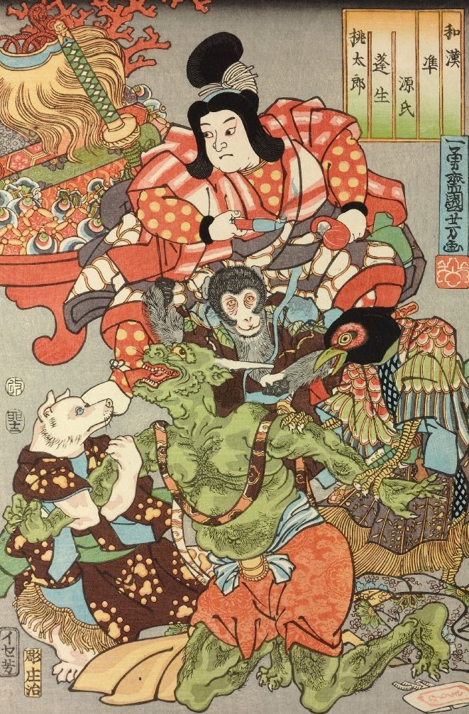 Así lo hizo y, capitaneados por Momotaron, todos irrumpieron en el reino de los oni sin parar de gritar:
