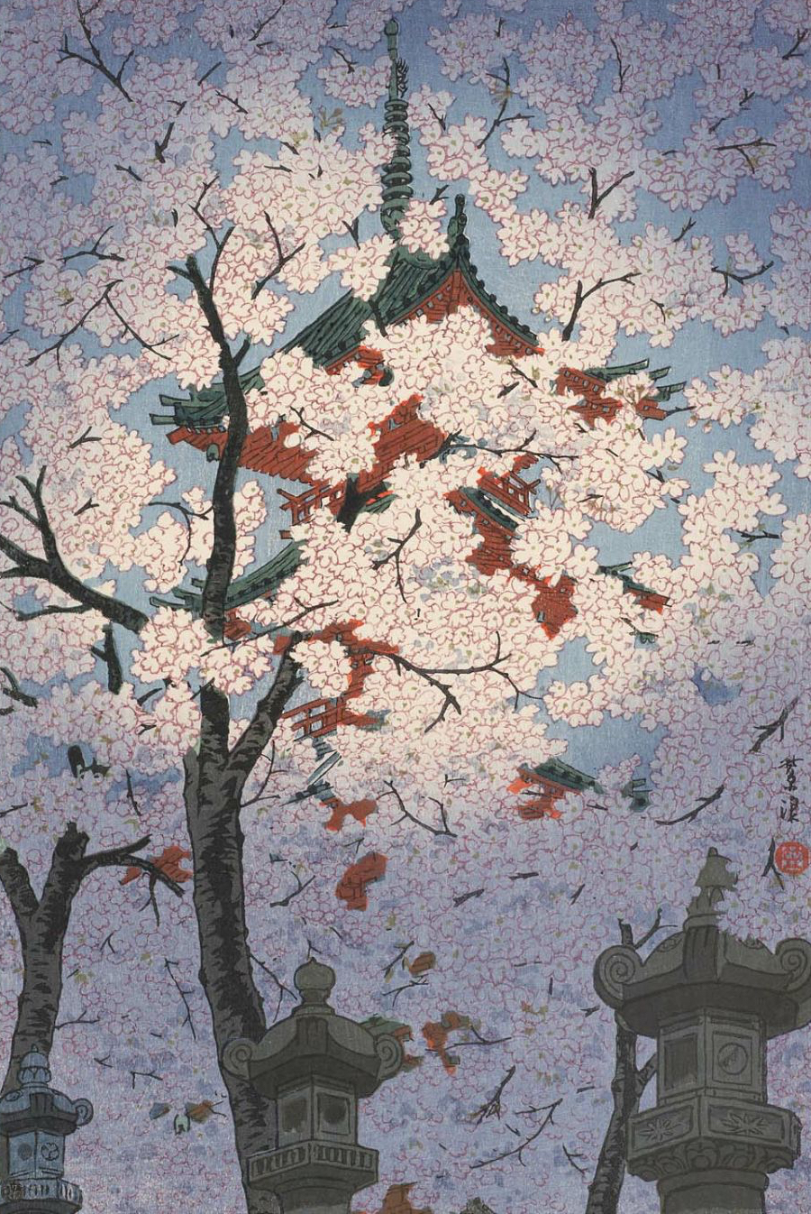 titulado «Flores de cerezo en el Santuario Tôshôgû en Ueno»