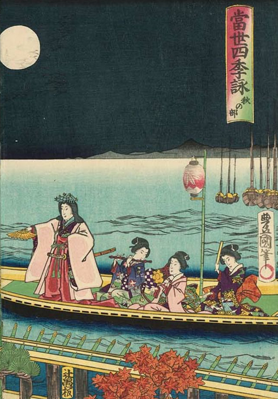 Obra de Utagawa Kunisada titulada «Príncipe Genji y la Canción de Otoño»