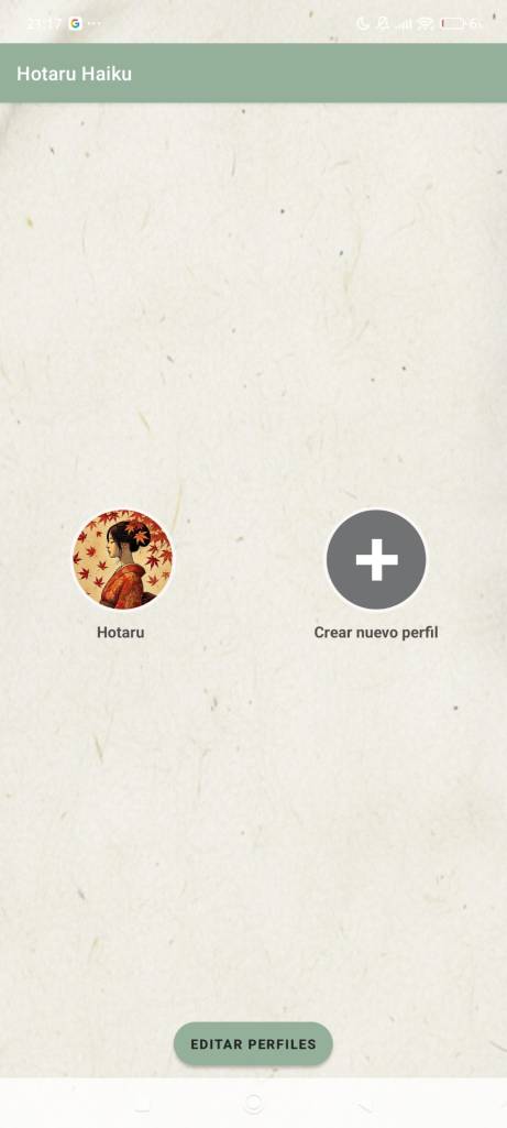 Quizá, lo normal sea que cada persona use un único dispositivo móvil; pero como sabemos que hay dispositivos que se comparten o que quizá se quiera tener varios perfiles para una misma persona con el objetivo de experimentar, la principal función que ofrece la aplicación es la de creación de un perfil.