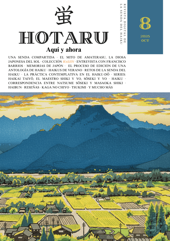 Este número de Hotaru llega con el comienzo de tres nuevas series en las que traduciremos obras de Masaoka Shiki y Takahama Kyoshi. Además de la continuación de las cartas entre Shiki y Sōseki con la que ponemos fin al año 1889. Sumamos, además, a nuevos colaboradores y ampliamos nuestra sección de haibun con las iniciativas que desarrollamos en nuestro grupo de retos.